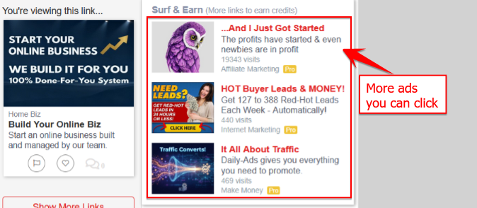 Click on them and surf the site for at least 5 seconds to start earning credits. The longer you surf, the more credits you earn. You can earn credits for up to 60 seconds.